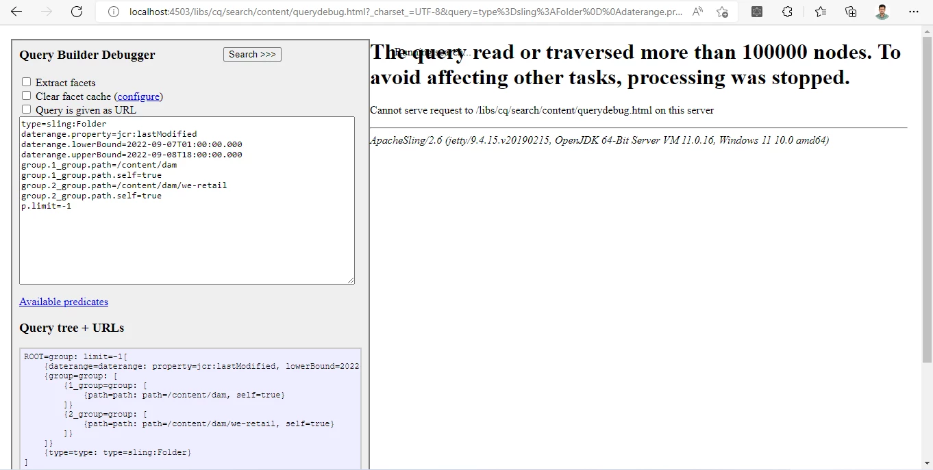 This is a rule within AEM where a query will stop after traversing a certain amount of nodes.