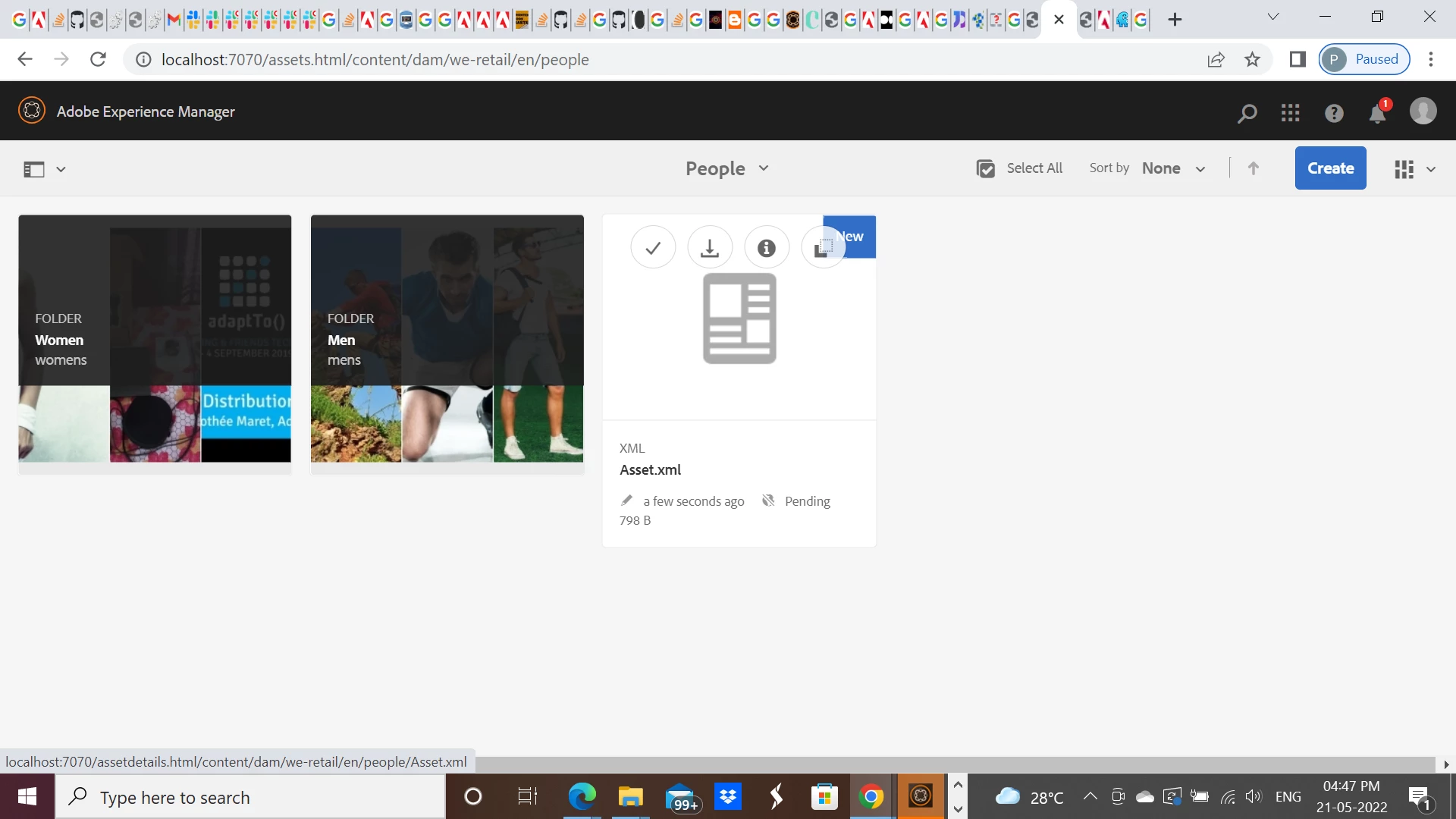 assetManager.createAsset("/content/dam/we-retail/en/people/" + filename, fileInputStream, "application/xml", true);