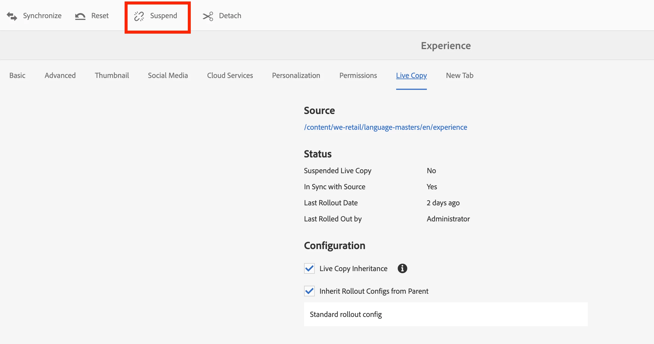 I created a live copy from the master copy, need to cancel the inheritance of individual property in single live copy, the remaining live copies will work as per the master copy.