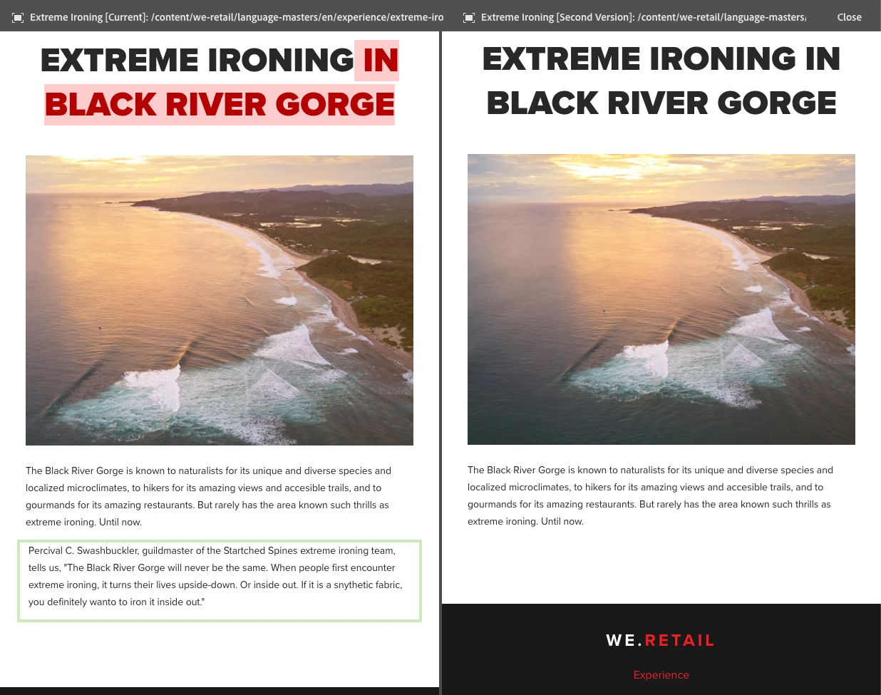I have added one heading as "Test" in About Us page. and how can I see the history of authored content.