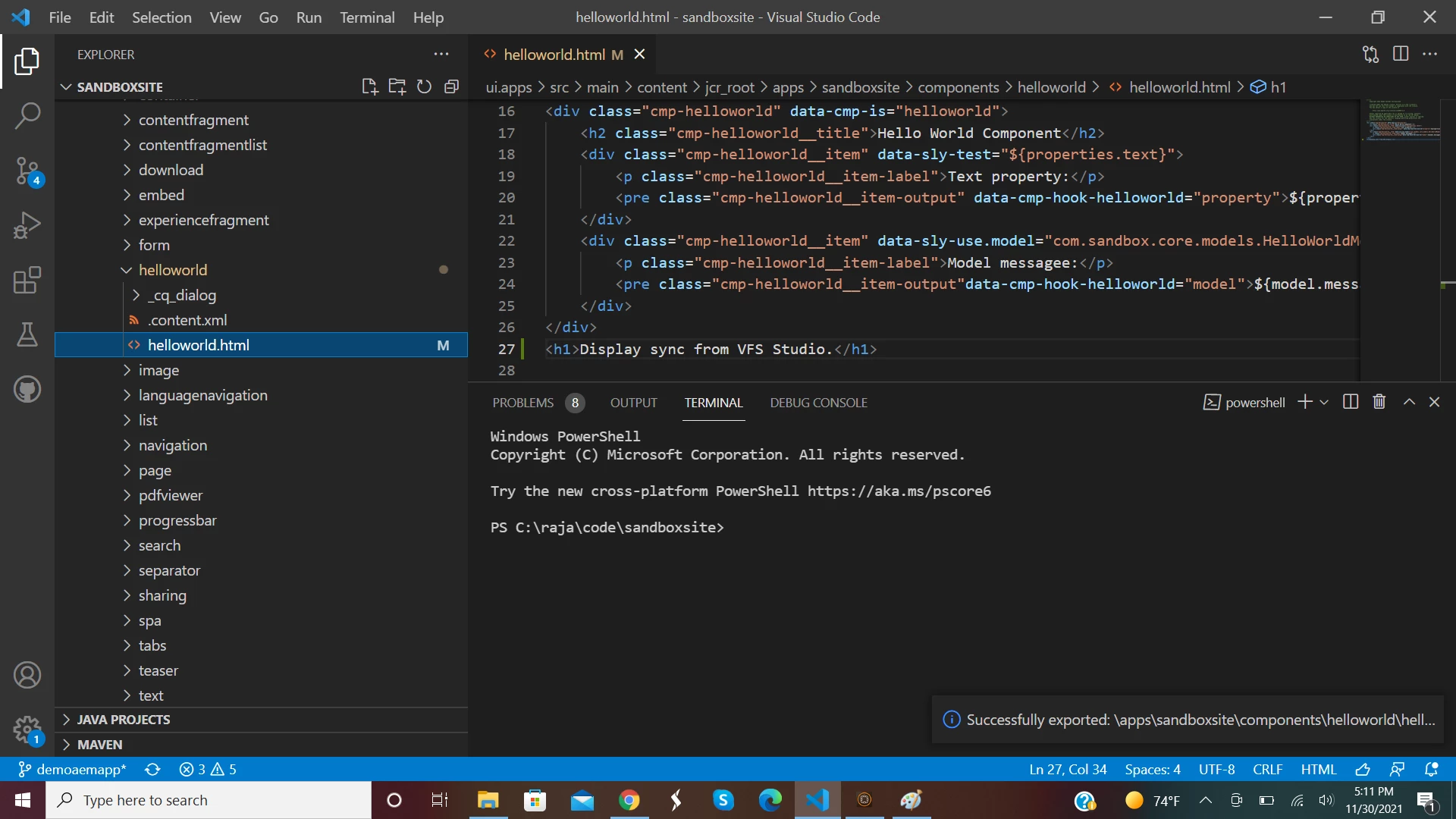 and I tried to use VSCode AEM Sync to export the entire /foundation folder as well as its two child files into my local AEM instance (6.5.0).