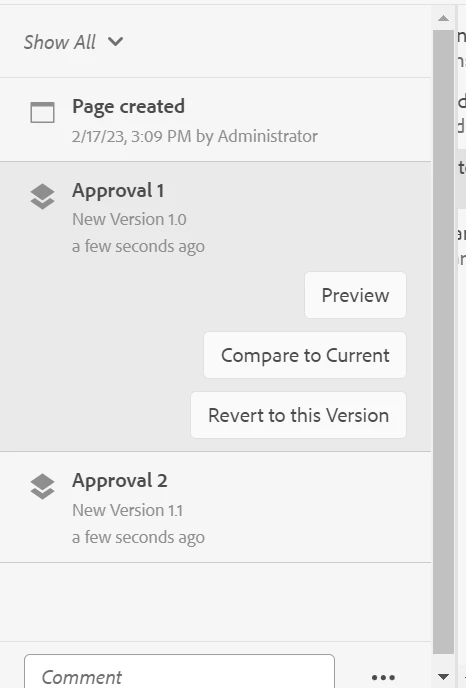 I have two user groups - Authors and Approvers. When authors author the content (say changing an image, changing the text of a component etc) and publishes, a workflow will be started and it goes to Approvers group. Is there a way for Approvers to visually see the changes made by Authors in that page? A side by side comparison view of the page (Something like versions comparison).