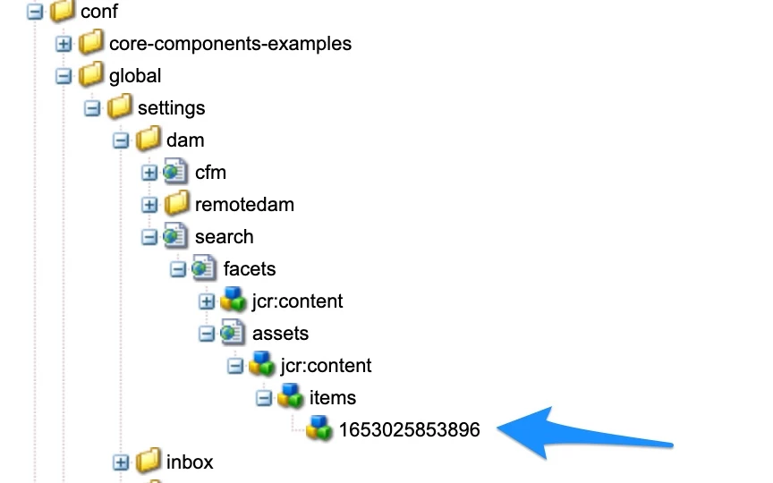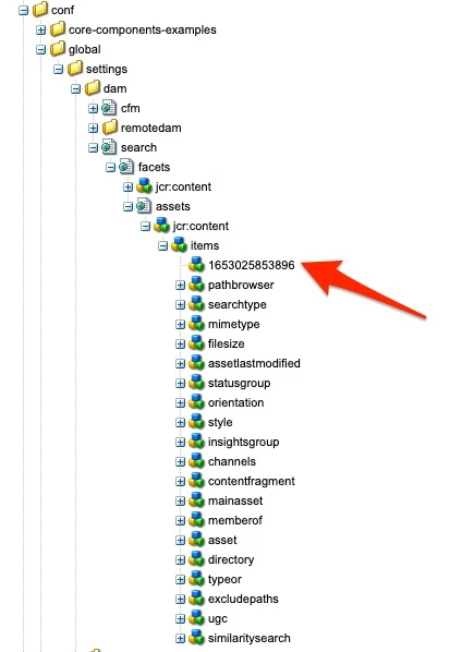 If I good understand under /conf you have only your custom fields, and you have removed all OOTB ones. If so this is correct behavior that you are seeing only your custom fields. Under /conf you should keep all the fileds OOTB and custom. OOTB fields will be automatically copied when you first time edit Assets Admin Search Rail from GUI.