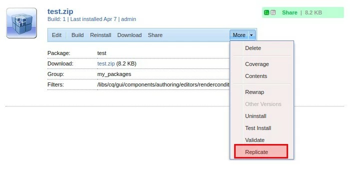- Then click on More > Replicate to install the package on Publisher