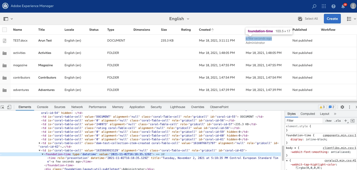 If we modify any assets - timestamp(Modified,) views like - "a few seconds ago"