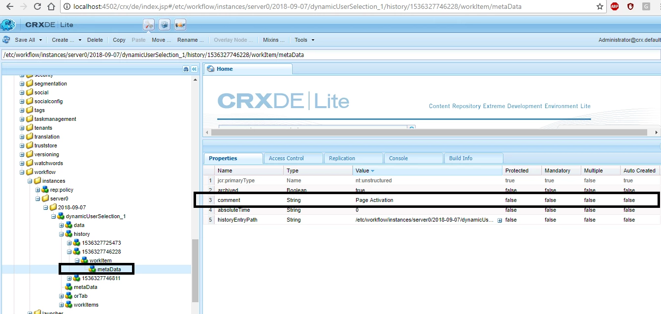 Issue: I didn't see property value history metaData node in workflow instance node.