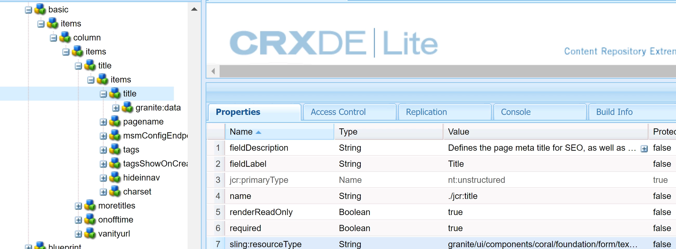 - Go to this page component. Drill down to the field that you want to make mandatory. Add the required attribute, based on the documentation for that field. Example: for a textfield (granite/ui/components/coral/foundation/form/textfield), documentation is https://developer.adobe.com/experience-manager/reference-materials/6-5/granite-ui/api/jcr_root/libs/granite/ui/components/coral/foundation/form/textfield/index.html