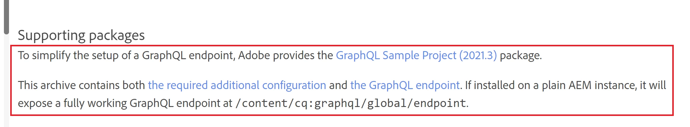 To enable GraphQL queries in AEM, create an endpoint at /content/cq:graphql/global/endpoint: