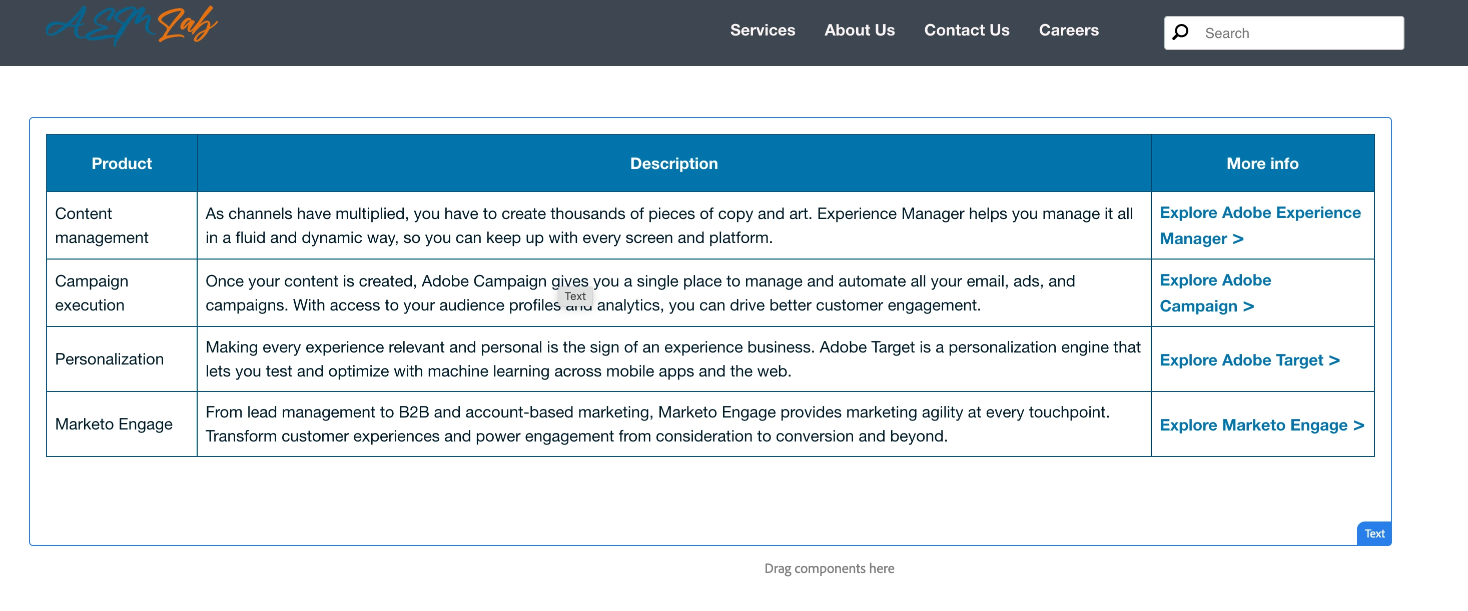 How to enable the RTE editor for the table component in AEM6.4