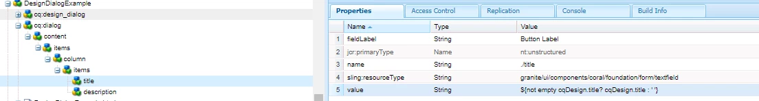 @tessa_learner1 For directly reading the value and populating the same in the cq:dialog, it is feasible with the cq:design i.e. if configured in the design dialog via something like ${not empty cqDesign.title? cqDesign.title : ' '}