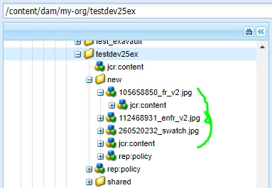 Marked images in the green should basically filtered further based on the property in second level of parent node which is testdev25ex
