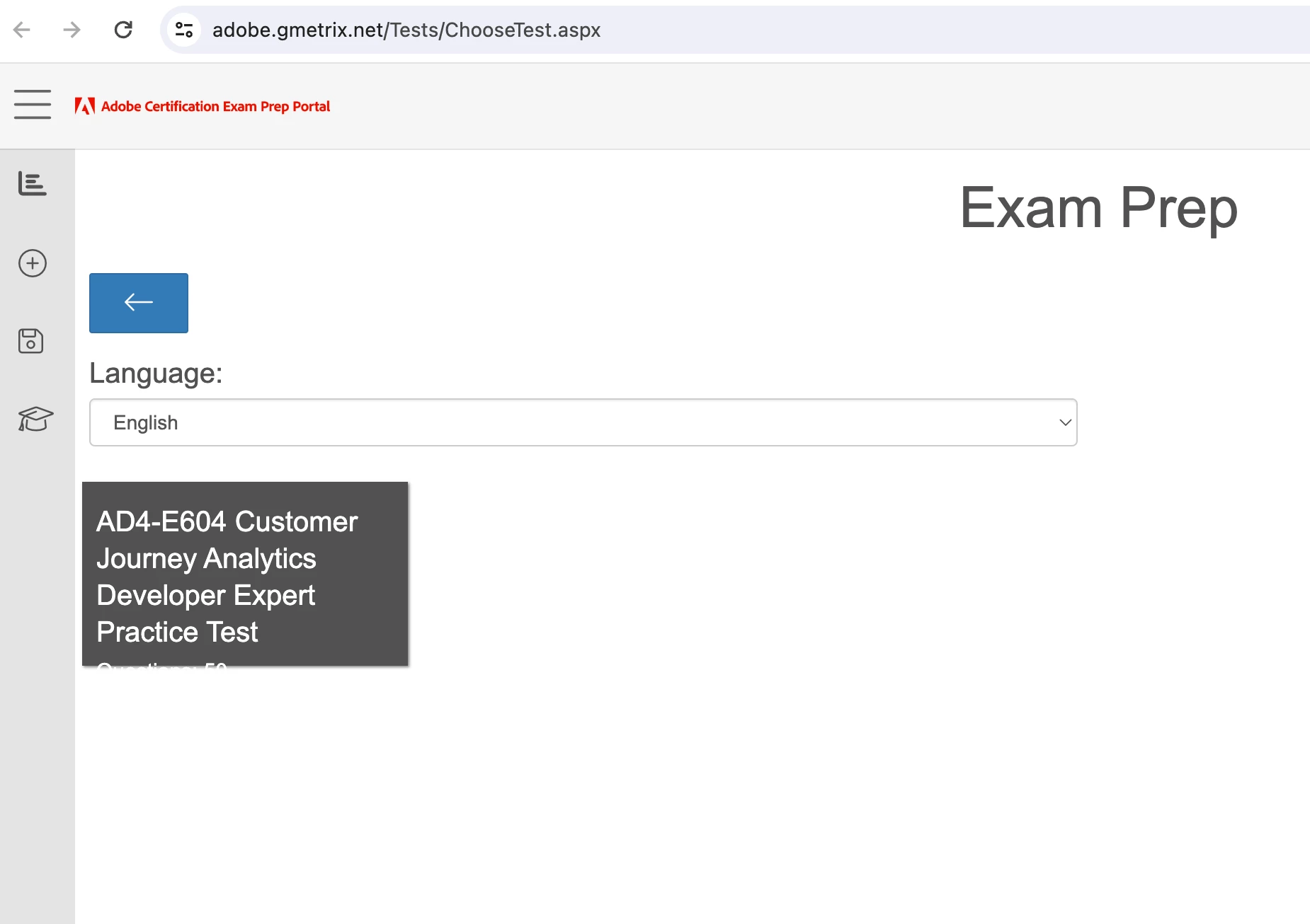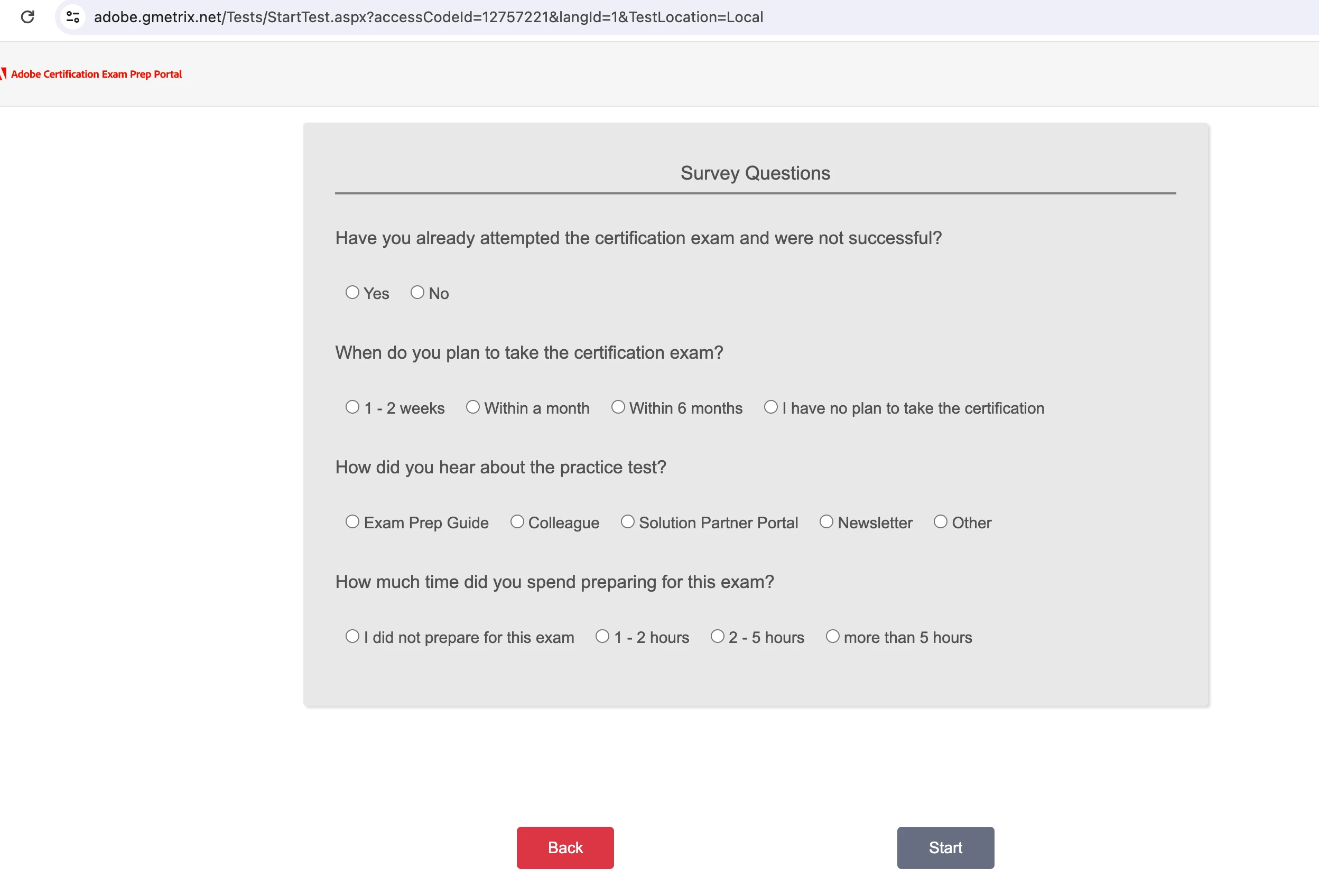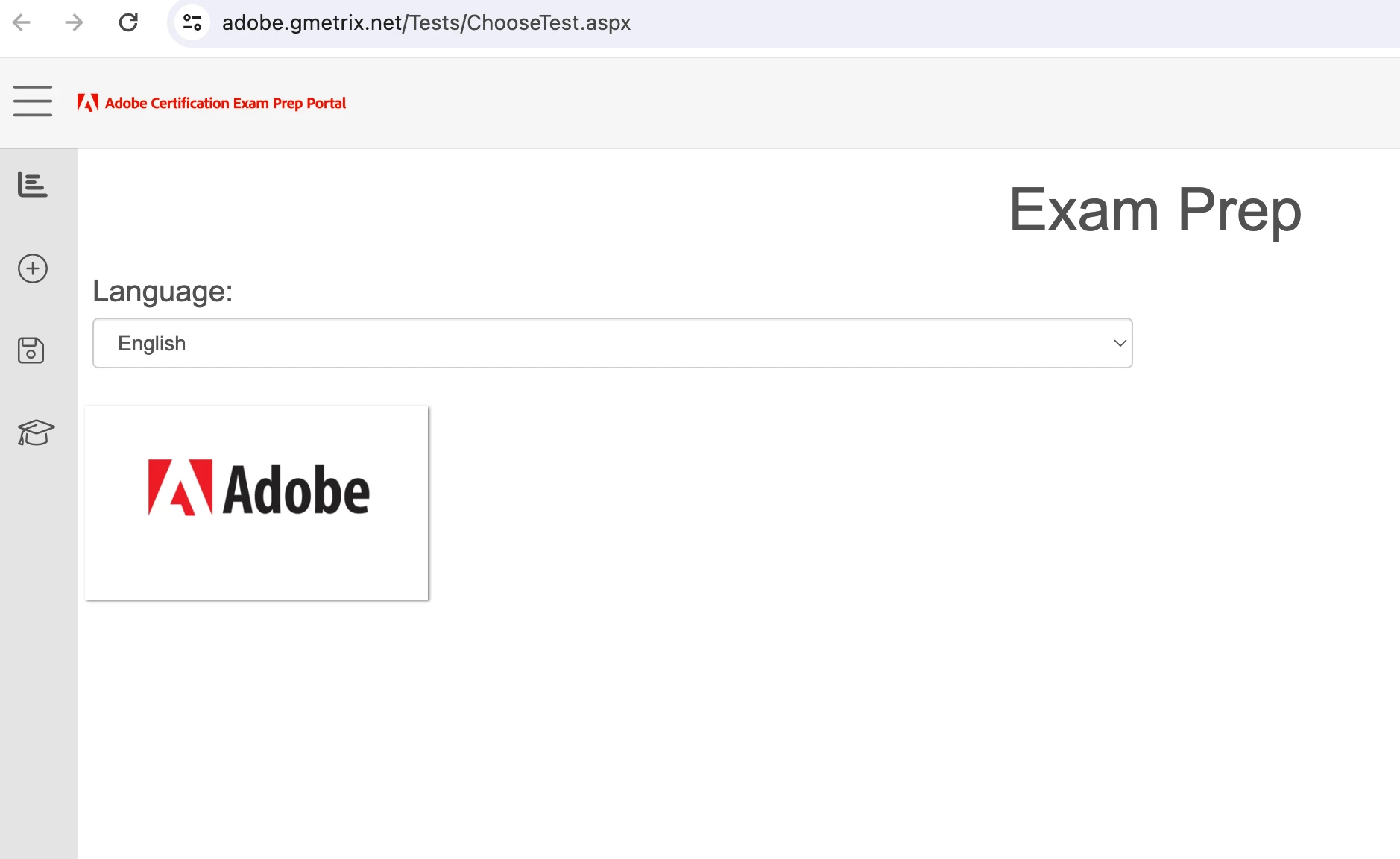 You will be landed on to practice tests portal (https://adobe.gmetrix.net/Tests/ChooseTest.aspx)