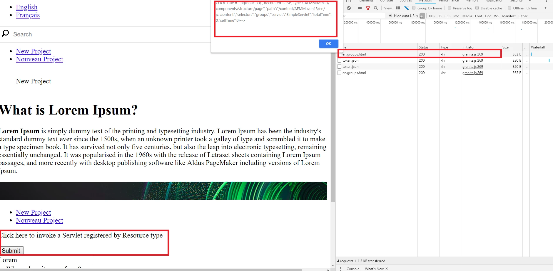 I have a component which is invoking the servlet via an Ajax call.
