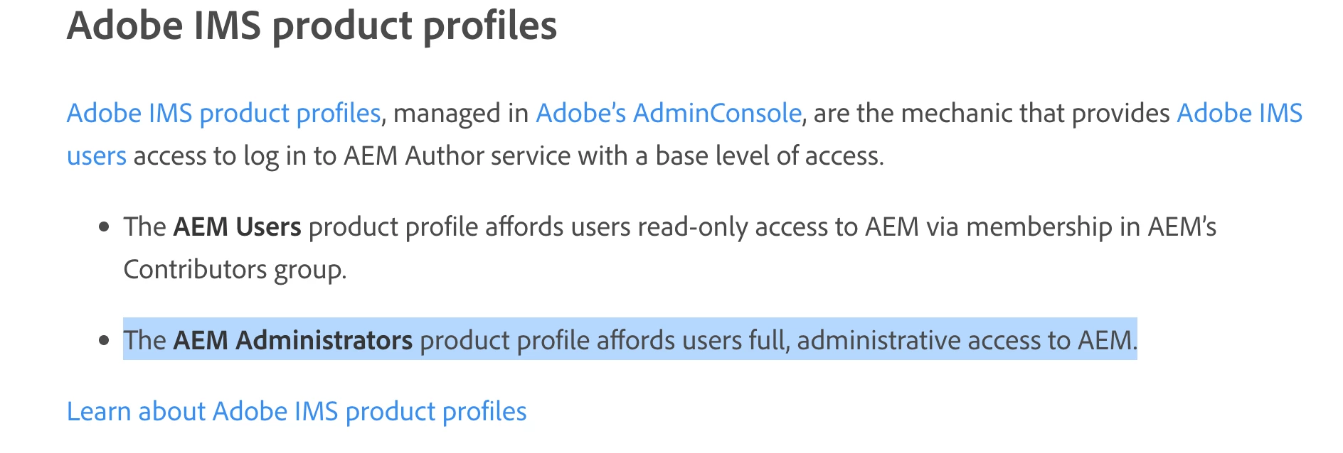 Created a program in adobe cloud and created 3 environments those are dev, stage, prod. I am the system administrator in admin console so I have full access in admin console. I want to have admin access in dev hence I enabled both AEM Users-xxxxx & AEM Administrator -xxxxx product profiles. With these settings I am able to login in aem dev server but I dont have access to /conf and /var, seems like I dont have have admin access.