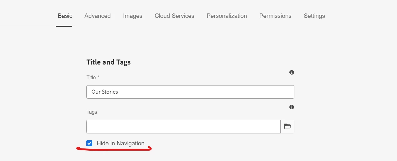 After selecting the "Hide in Navigation" this page "Our Stories" is still appearing in the navigation.