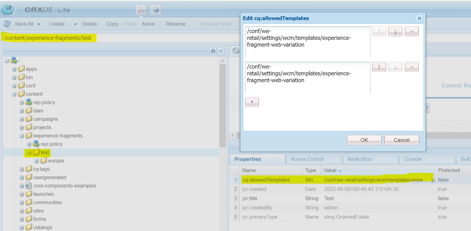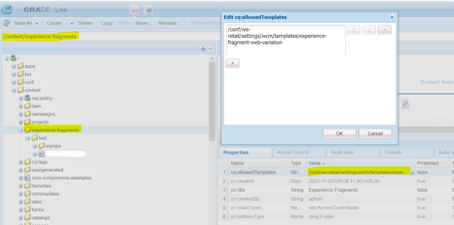 How to hide all the XF templates and allow only specific XF templates to display while creating Experience fragments.