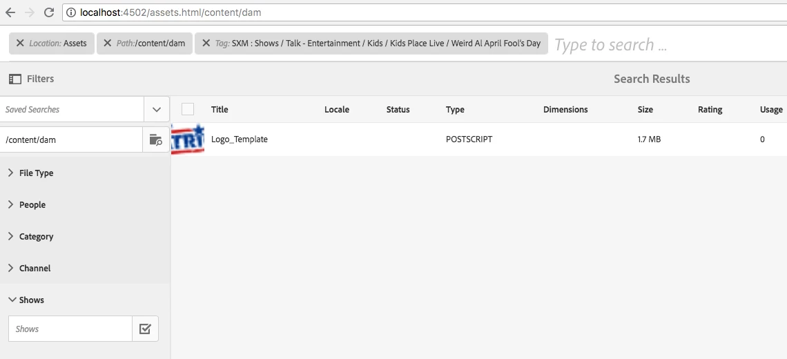 For example, we can search for assets that has a particular Tag assigned. As below: