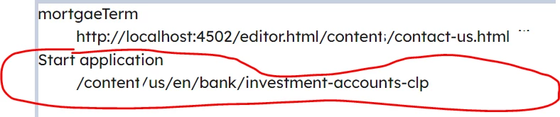I have created one Content Fragment Model where I have included Start application path browser as shown below.