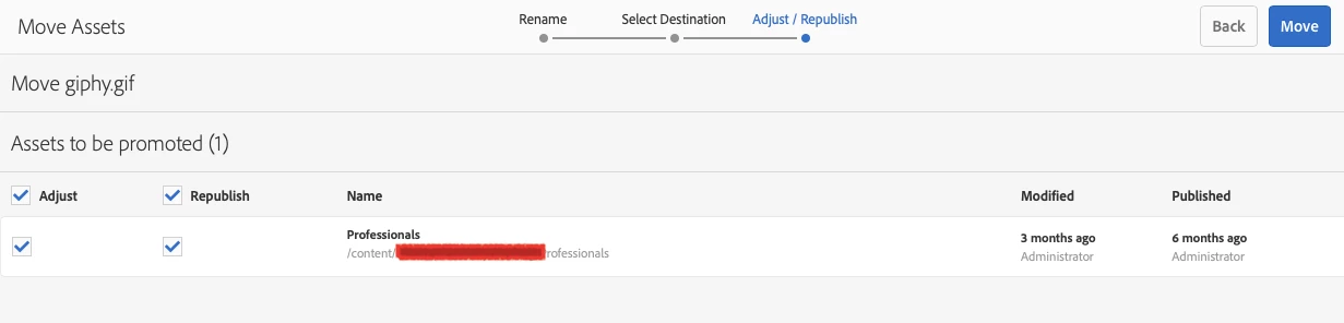 How to move assets to specific folder in AEM 6.4