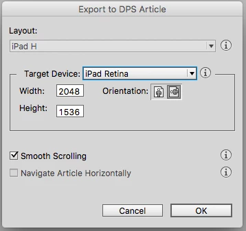 brobeldesign tip did work. When you export out of indesign, depending your final display size your going for, Im working specifically with iPad retina. I exported with the standard iPad retina dimension option with smooth scrolling selected a and this works.