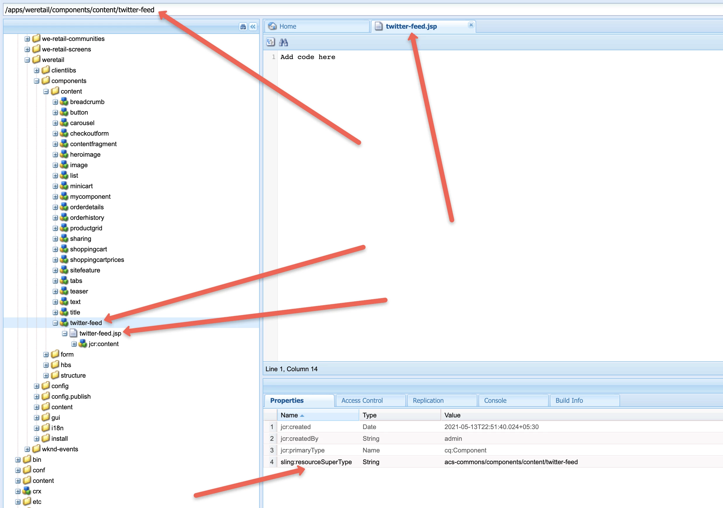 This file exists => /apps/acs-commons/components/content/twitter-feed/twitter-feed.jsp.