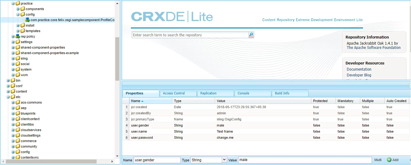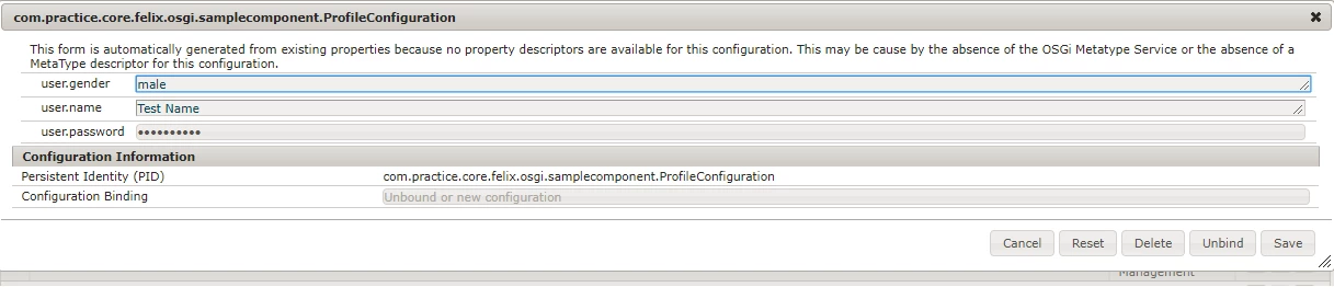 I have created a OSGI component to read some user related setting from the /system/console/configMgr. The code for OSGI component is some thing like this.