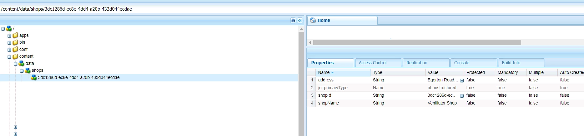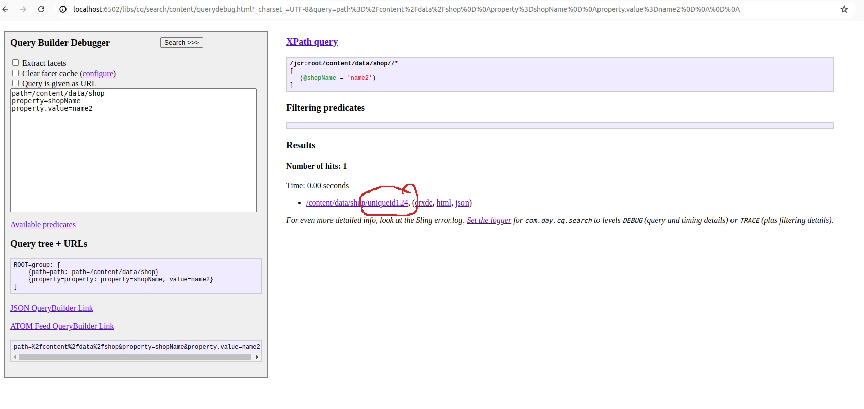 Then in servlet itself first check if that shop name exist by fetching(making http call to /content/data/shops.infinity.json) all shop data then filter to check shop Id present OR you may use queryBuilder to search for shopId with shopName.