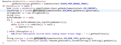 In AEM 6.5 I am trying to read the jcr:data (Binary) from jcr:content and convert it to base64 to display the image in frontend page level (HTML).