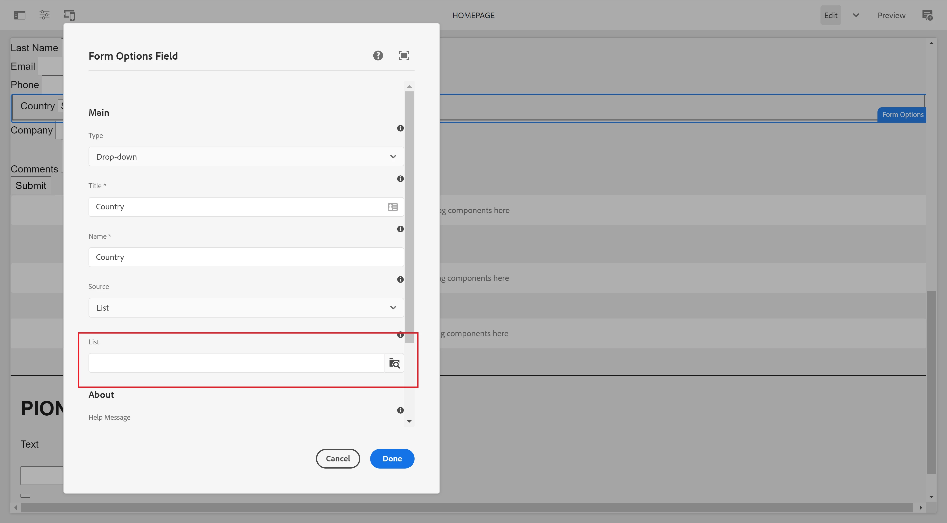 I’m trying to create a dropdown list were the list items is a list of countries (I have a list of countires in an XML and json format) and I want to load that static in /apps so I can reference it in form options (picture below)