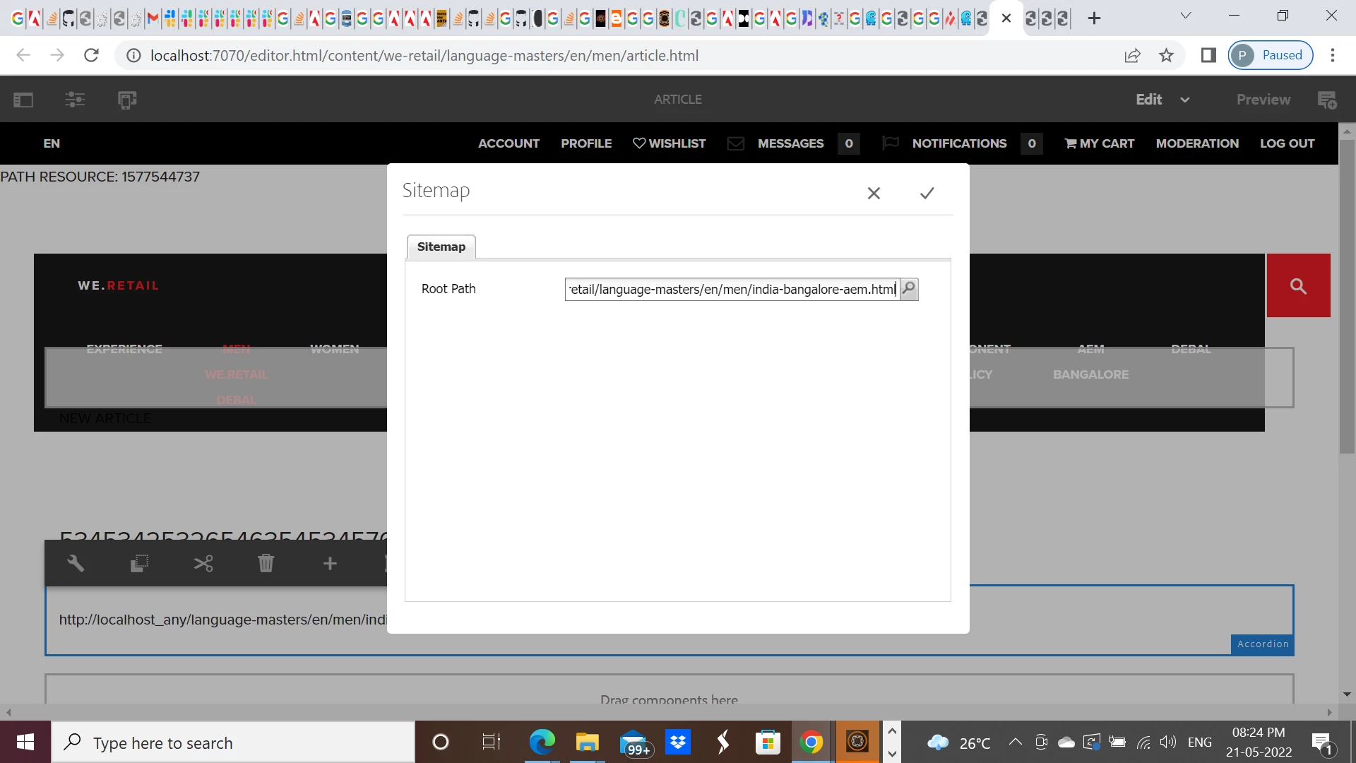 %>Author's entries via classic ui path field - /content/we-retail/language-masters/en/men/india-bangalore-aem.html
