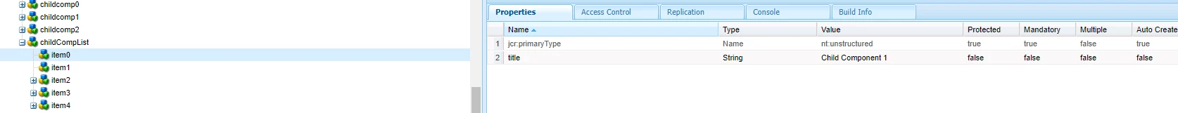 E.g. in the below picture, item0 will be of sling:resourceType of contained_component and its properties, such as titleTarget and titleText, (and subnodes) will be created with its own dialog.