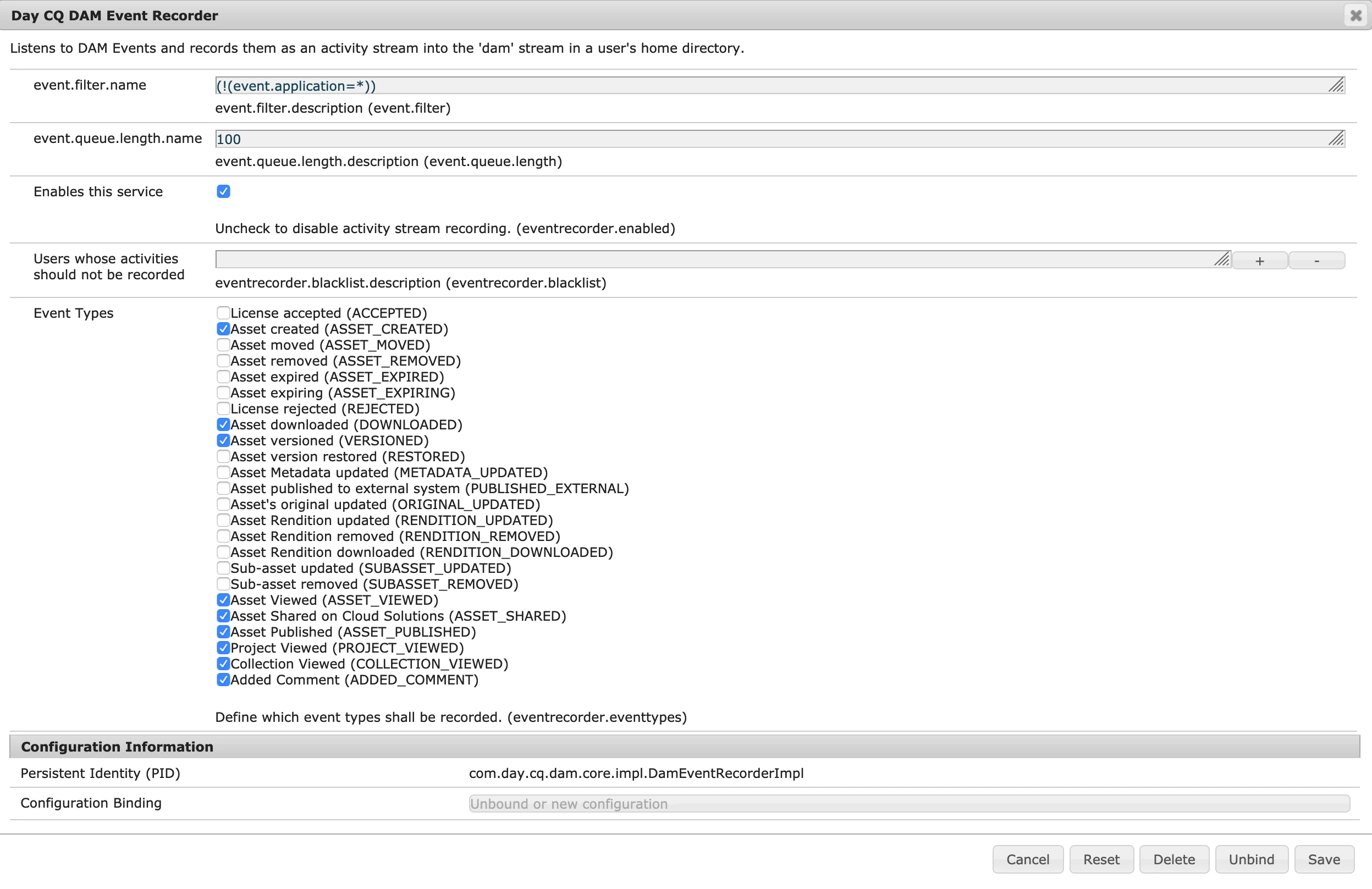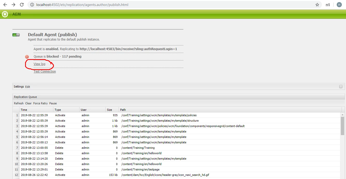 We can see events being logged under http://localhost:4502/system/console/event tab. but not able to see complete events, just the events of one hour .