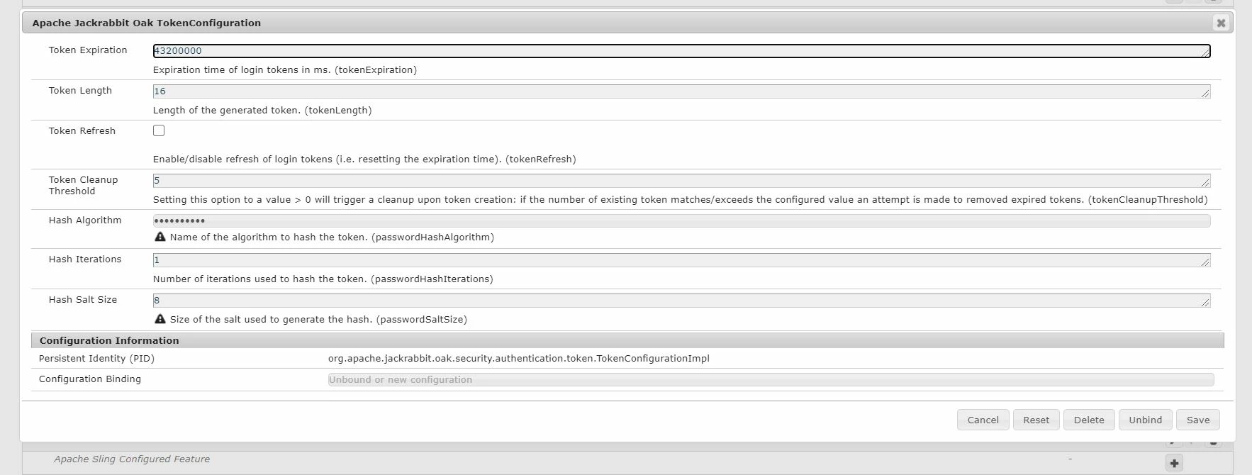 /system/console/configMgr/org.apache.jackrabbit.oak.security.authentication.token.TokenConfigurationImpl