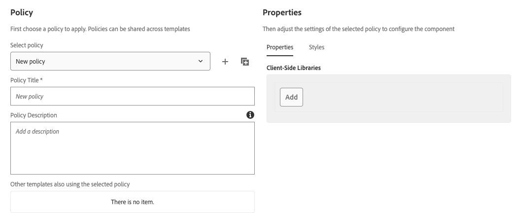 How do I set 2 default policies for an Experience Fragments in AEM? Currently when I have to create a new XF, I need to navigate to General --> Templates every time and define the page policy with the correct policy for the client libs.