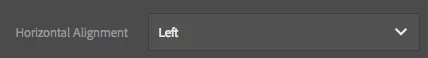 <horizontal jcr:primaryType="cq:Widget" sling:resourceType="granite/ui/components/foundation/form/select" fieldLabel="Horizontal Alignment" name="./halign"> <items jcr:primaryType="cq:WidgetCollection"> <topLeft jcr:primaryType="nt:unstructured" text="Left" value="hleft"/> <topCenter jcr:primaryType="nt:unstructured" text="Center" value="hcenter" selected="true"/> <topRight jcr:primaryType="nt:unstructured" text="Right" value="hright"/> </items> </horizontal>