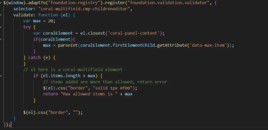 I have extended the accordion core component, requirement is to set the limit of 20 items for the accordion, how to set the limit for the items.