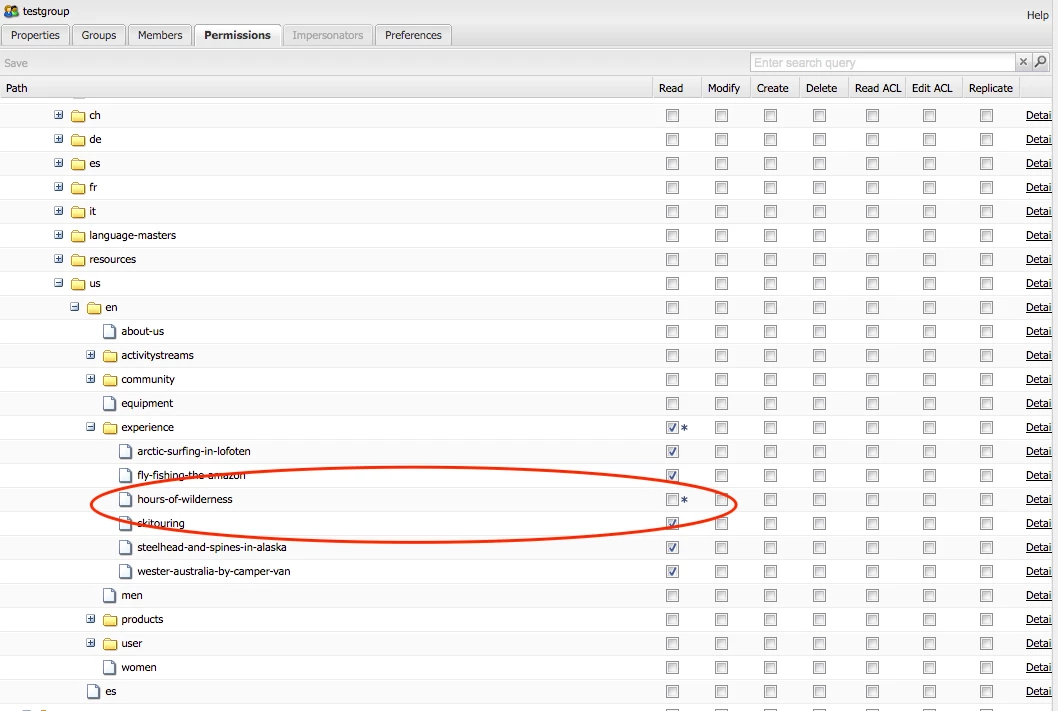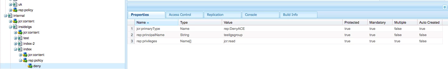 I have a requirement where I should set up a deny (rep:policy) access to an user group(Eg: testgroup) under a specific AEM page (Eg: /content/we-retail/us/en/experience/hours-of-wilderness) programmatically based on the checkbox property authored in page properties as shown in the screenshot below.