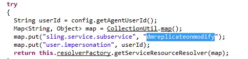where dynamic-media-replication systen user tries to impersonate agent id(dynamic-media-replication-new in this case) where it is failing with above exception