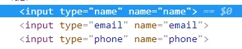 When check in the content the the properties inputField type is multi with values name,email,phone