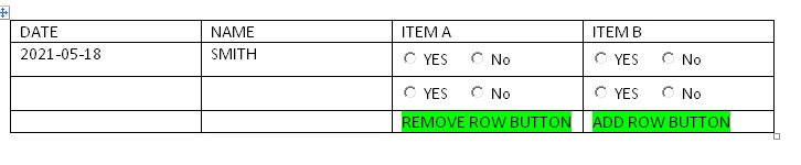 - So when I click the add row button the row above it will populate with the yes and no that would have radio buttons to select.