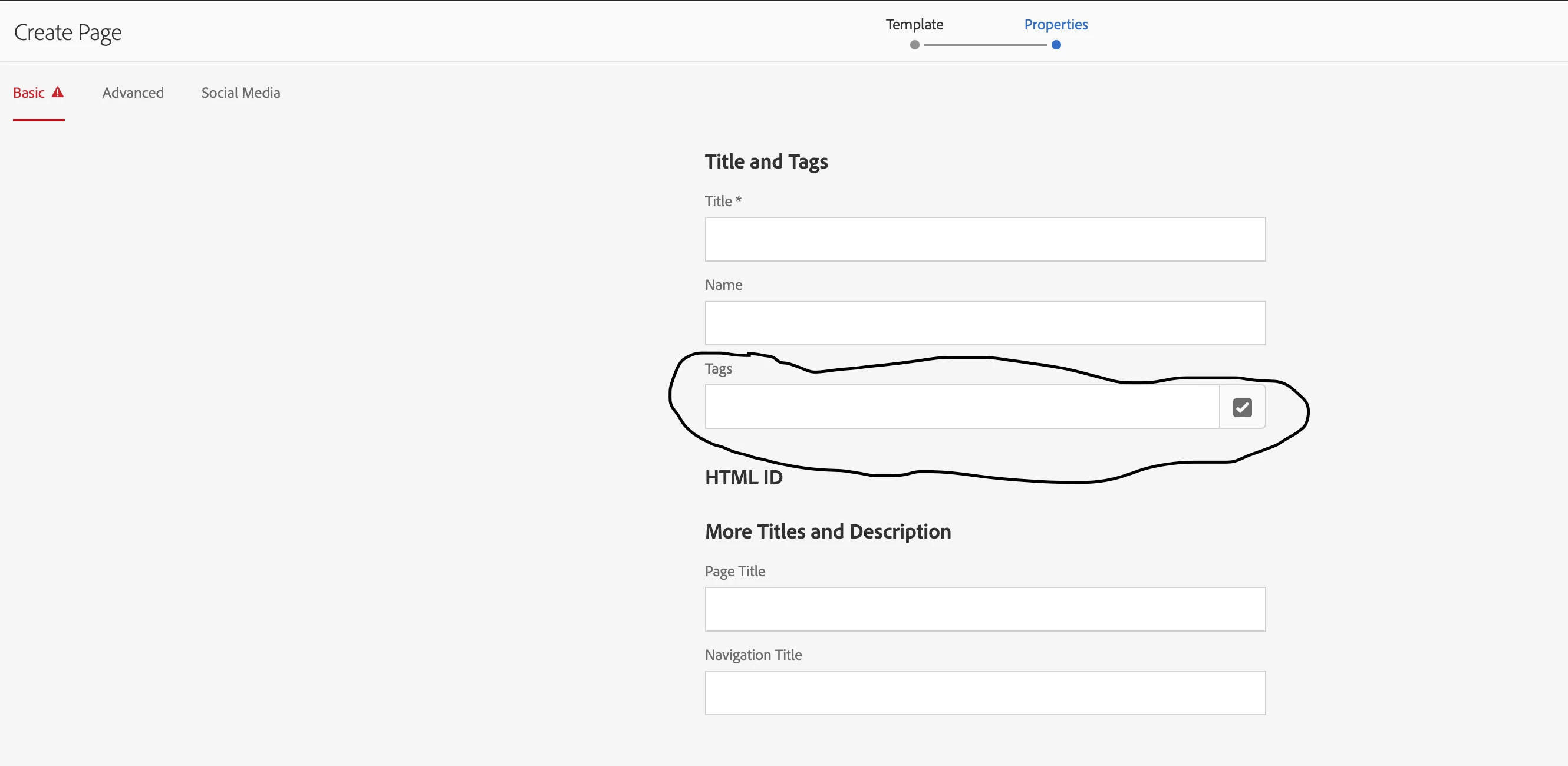 I am trying to hide the tags from the createpagewizard. The one i have highlighted in the screenshot. I was able to accomplish that ..But i notice some weird behavior after making that change .. For existing page components the edit tool which we notice in the edit mode isnt visible. Am i missing something? which is causing this awkward behavior