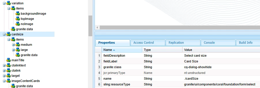 dialog structure, for cardSize node I added granite:datanode