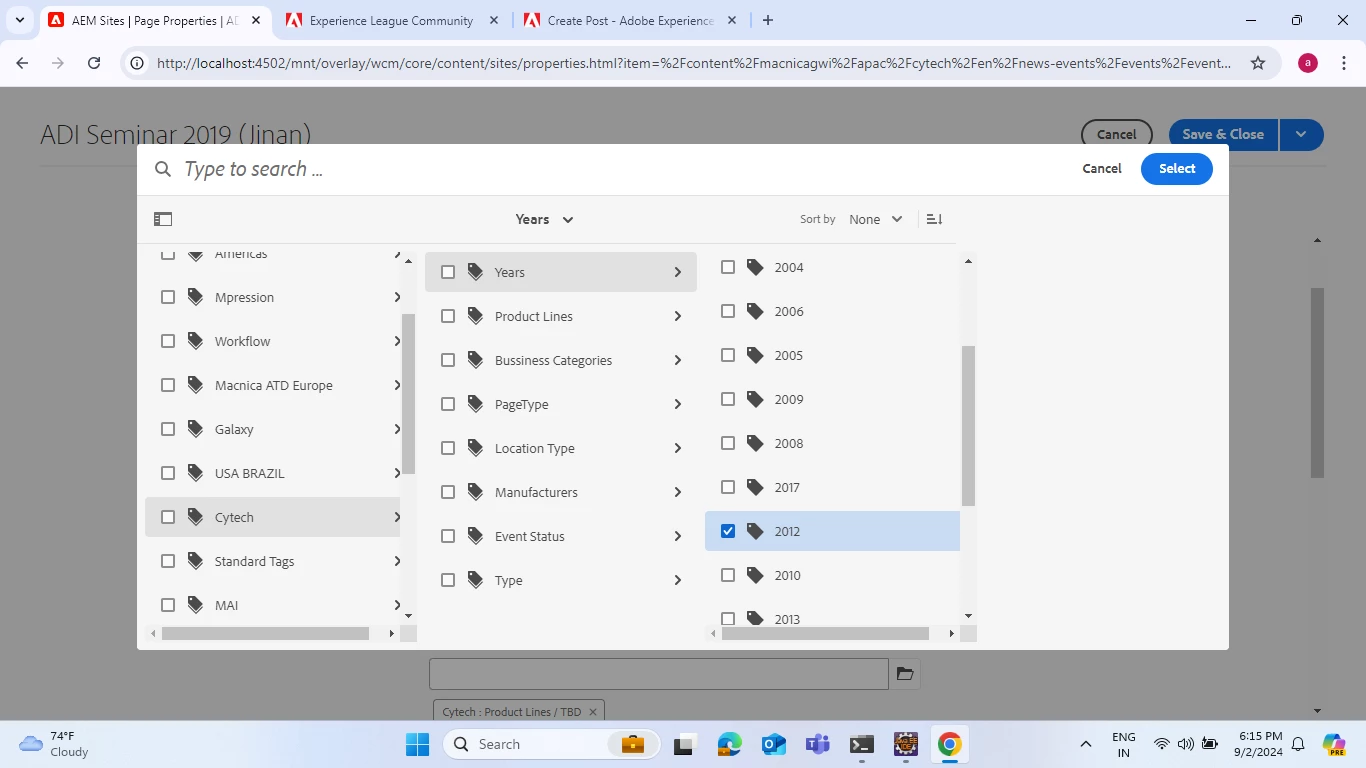 Here you can see i am in cytech subsidary and startdate has 2012 . tag here is appled cytech:year/2012.