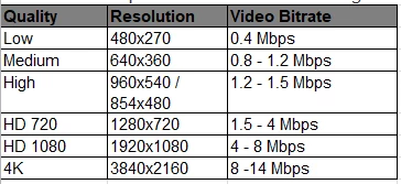 what is size resolution that is best for what internet speeds?