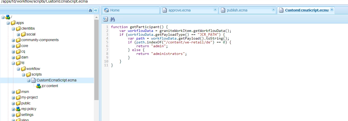 i have written some ecma script for participant step in workflow.