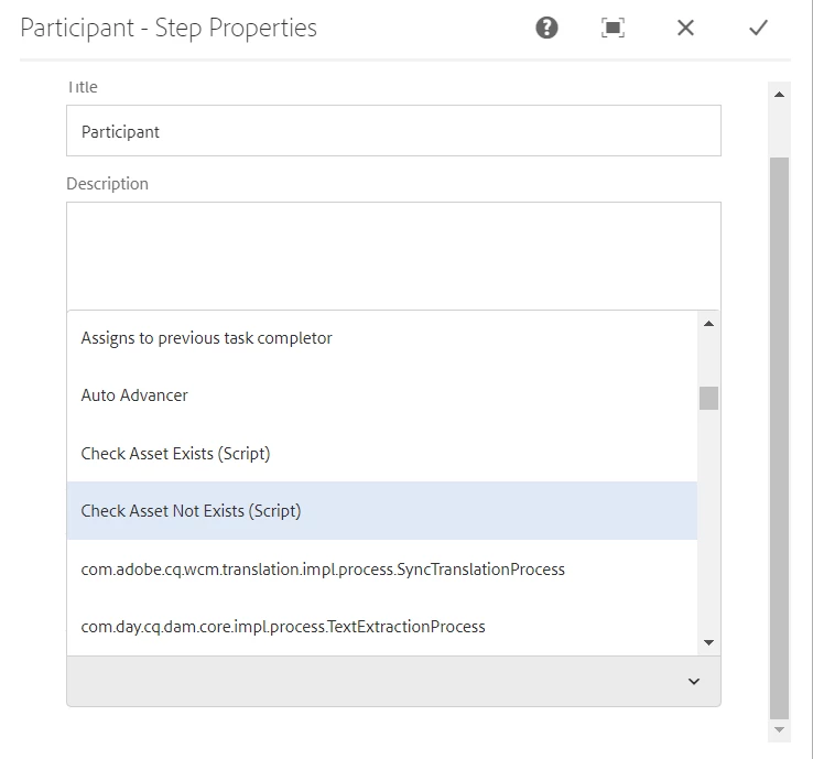 But i am not able to get that script in Participan step below is scren shot