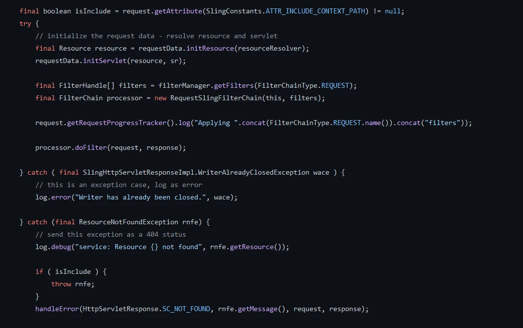 1. Why is SlingRequestProcessorImpl showing resource path "/content/brandsA/us/en " added to the original request path ?
