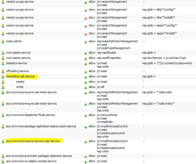 I'm facing this issue in my local AEM 6.4 and I logged in as Admin. I have verified the ACLs and I'm having the read access for the below highlighted services. Do I need to check anything apart from this?