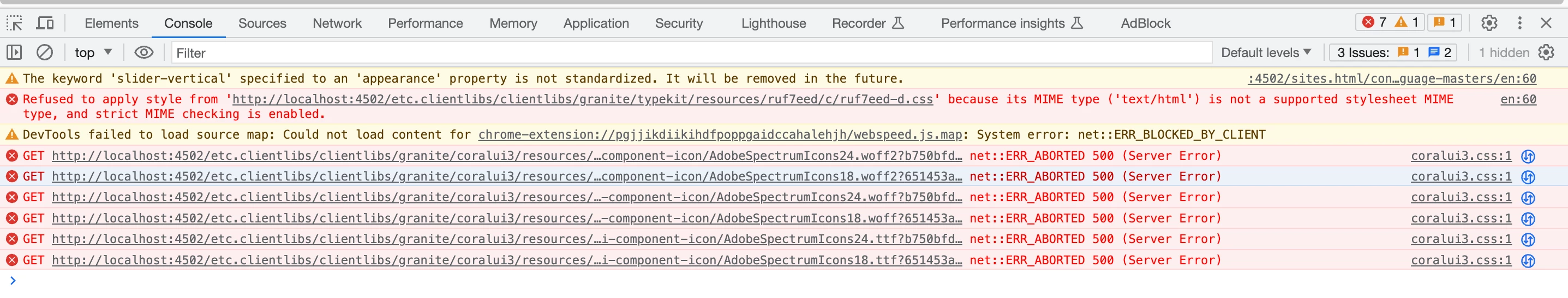 Icons on AEM landing page are not loading properly