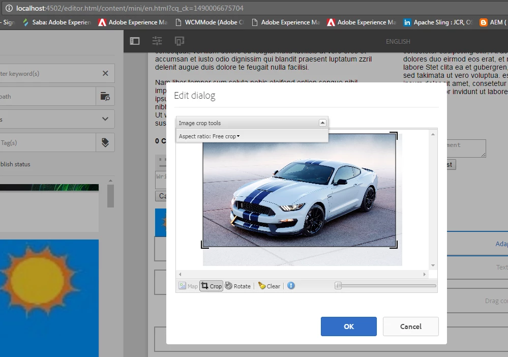I am able to crop the image. but I am not able to take the image from DAM however you can overlay and customise the component accordingly.